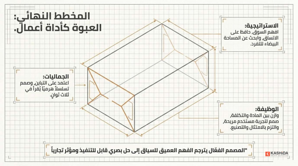 وأي خلل في أحد هذه الأبعاد ينعكس مباشرة على أداء المنتج في السوق. المصمم الفعّال لا يبدأ من الشكل، بل من الفهم العميق للمنتج والسياق، ثم يترجم ذلك إلى حل بصري قابل للتنفيذ ومؤثر تجاريًا.