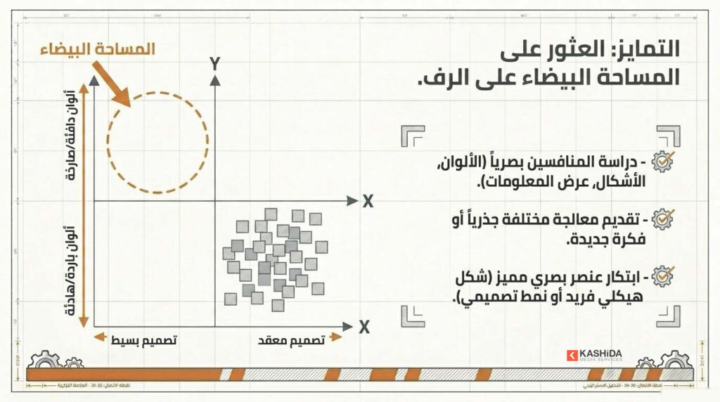 في بيئة تنافسية (رفوف المتاجر أو الإعلانات)، يجب أن: